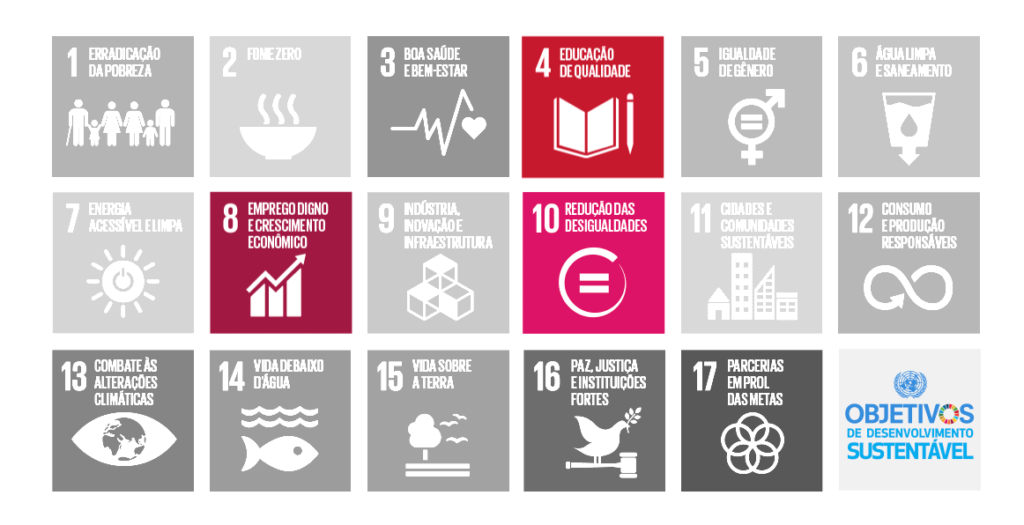 Ao todo, são 17 Objetivos de Desenvolvimento Sustentável. Desses, nossos projetos e ações concentram esforços em três objetivos prioritários, direcionados a crianças, adolescentes e suas famílias. Por meio de atividades educativas, promovemos o desenvolvimento de habilidades como raciocínio lógico, comunicação e expressão, criando condições para que cada participante possa competir de forma justa e ampliar suas oportunidades.